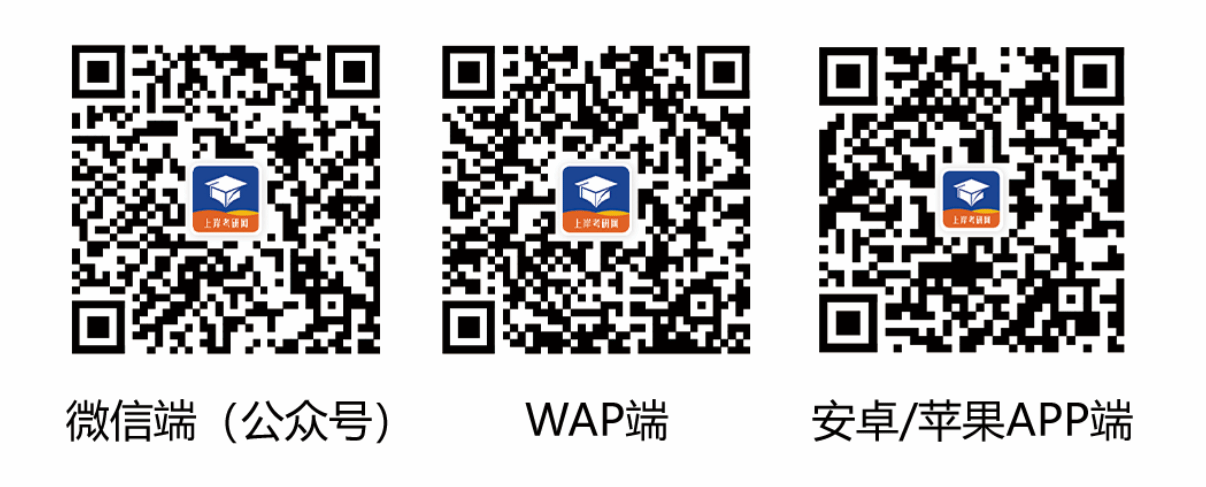 移动端使用方法:通过手机扫描下方二维码,关注微信公众号使用“上岸考研网”微信端,或下载APP使用。请注意:使用移动端时,须先通过校园网IP注册账户(该账户将自动升级为不限IP的移动端账户),并以该账户登录移动端。